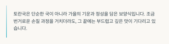 토란국은 단순한 국이 아니라 가을의 기운과 정성을 담은 보양식입니다.