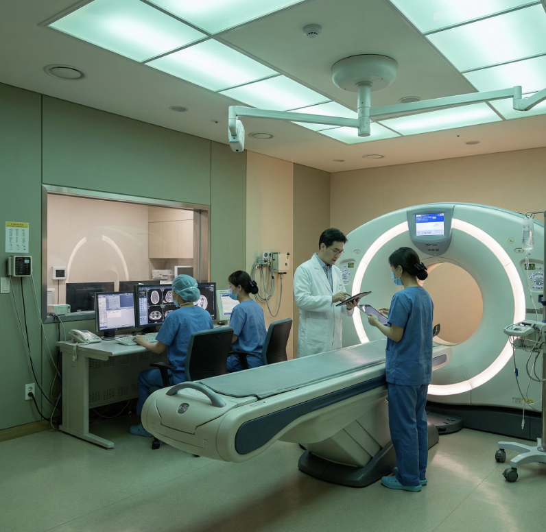 • CT 검사에서 다발성 갈비뼈 골절 확인