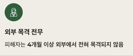 • 피해자는 4개월 이상 외부에서 전혀 목격되지 않음