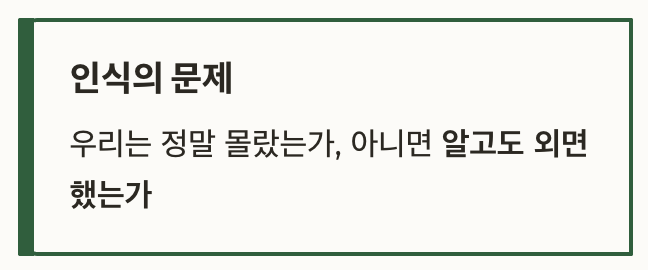 • 우리는 정말 몰랐는가, 아니면 알고도 외면했는가