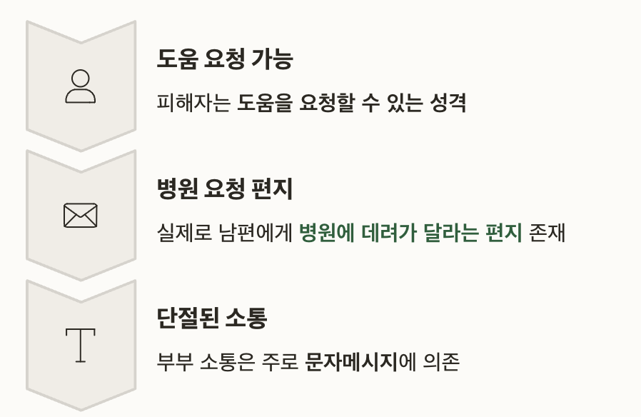 • 실제로 남편에게 병원에 데려가 달라는 편지 존재
