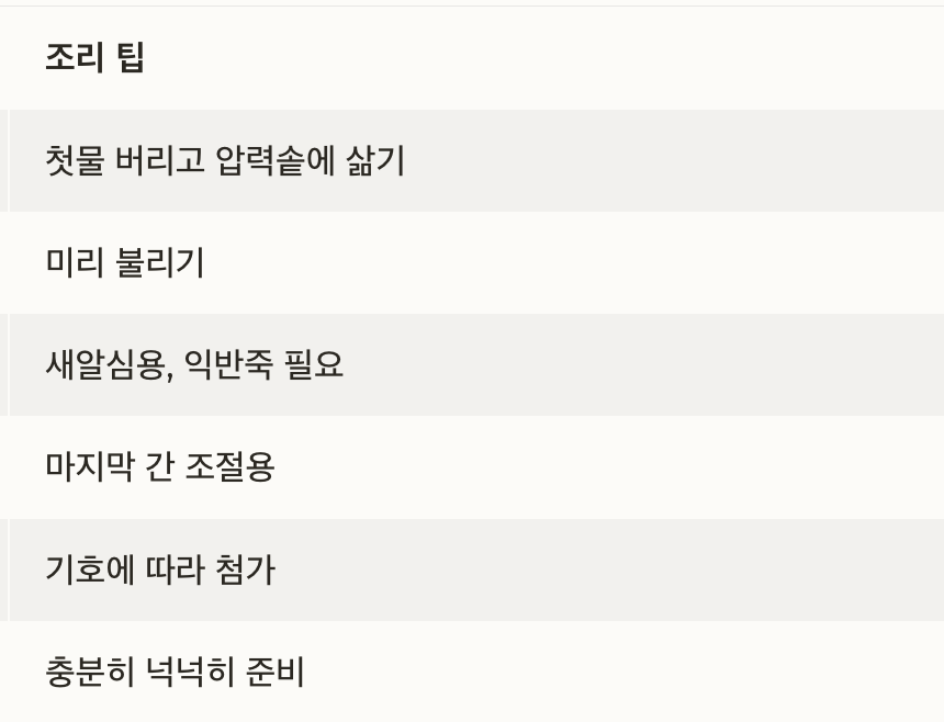 재료 정리 및 팁 한눈에 보기