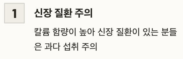 - 칼륨 함량이 높아 신장 질환이 있는 분들은 과다 섭취 주의