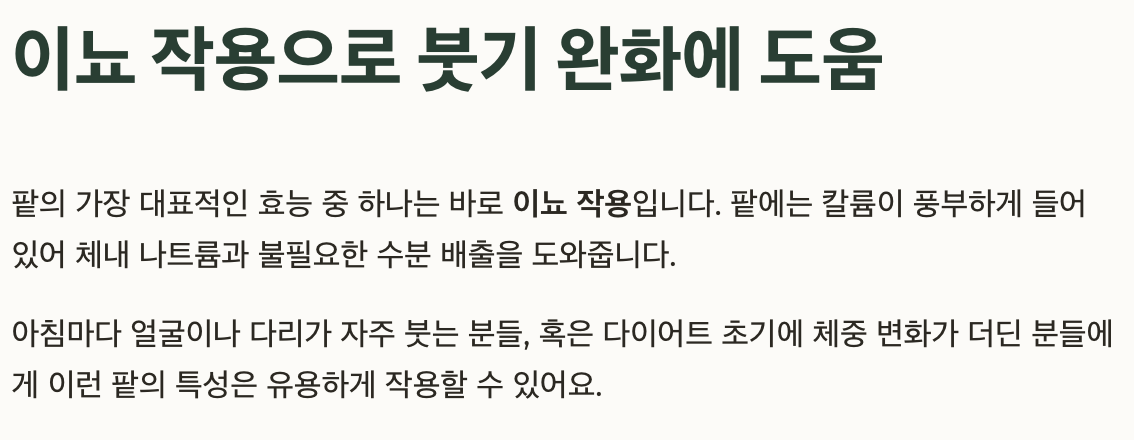 체내 나트륨과 불필요한 수분 배출을 도와줍니다.