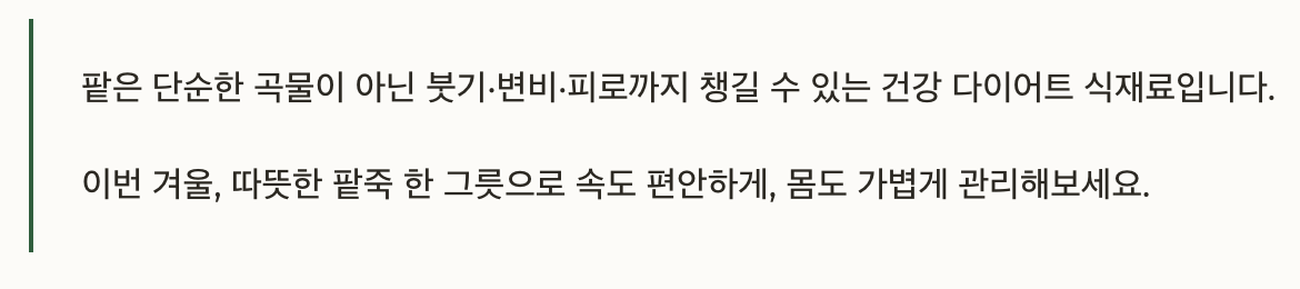 | 위장 부담 적음 | 자극적이지 않아 소화기 예민한 날에도 무리 없음 |