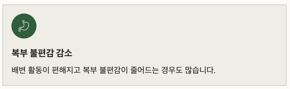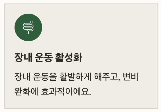 장내 운동을 활발하게 해주고, 변비 완화에 효과적이에요.