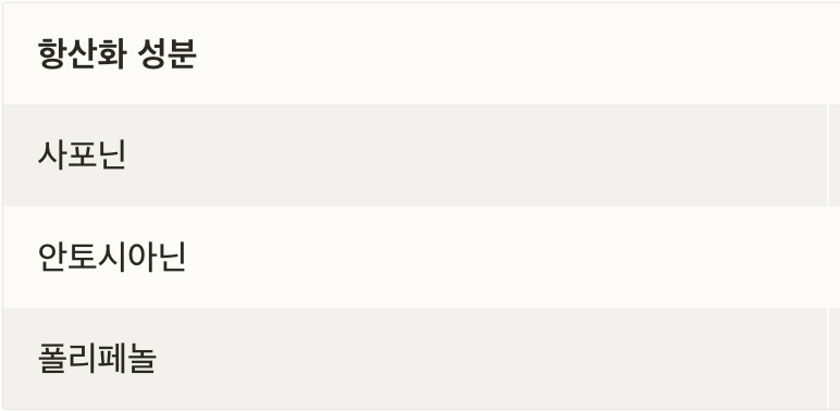 | 폴리페놀 | 노화 억제, 세포 손상 방지 |