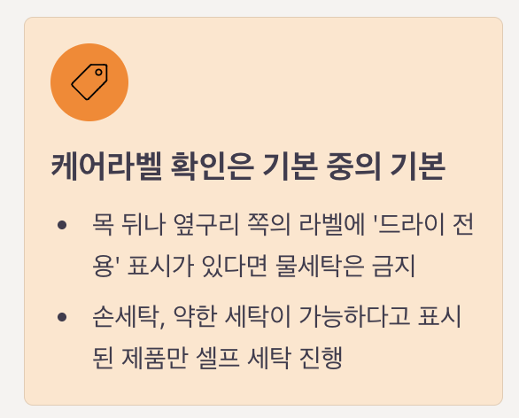 - 케어라벨 확인은 기본 중의 기본