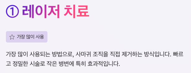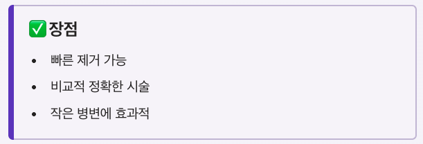 | 레이저 | 병변 직접 제거 | 빠르고 정밀 | 비용 부담 |
