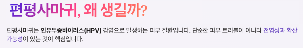 편평사마귀는 인유두종바이러스(HPV) 감염으로 발생하는 피부 질환입니다. 단순한 피부 트러블이 아니라 전염성과 확산 가능성이 있는 것이 핵심입니다.