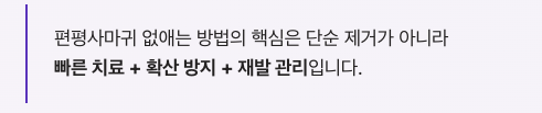 편평사마귀는 제거 후에도 다시 생길 수 있기 때문에 사후 관리가 핵심입니다.