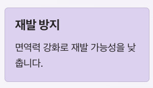 | 면역 관리 | 재발 방지 | 근본 원인 관리 | 꾸준함 필요 |