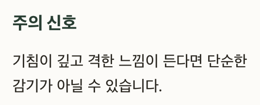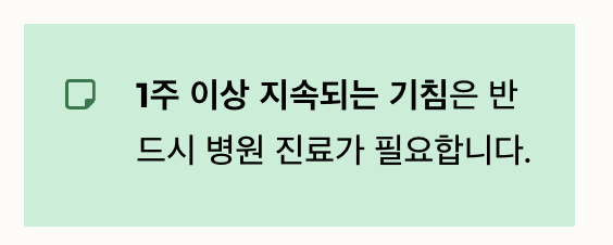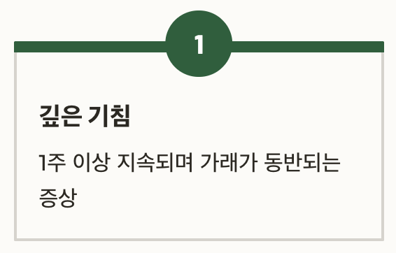 | 깊은 기침 | 1주 이상 지속, 가래 동반 |