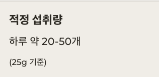 | 적정 섭취량 | 하루 약 20~50개 |