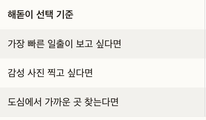 일출 예상 시간은 기상청이나 해양수산부 홈페이지를 참고하시고, 최소 30분 전에는 도착하는 걸 추천드립니다.