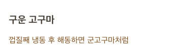 | 구운 고구마 | 껍질째 냉동 후 해동하면 군고구마처럼 |