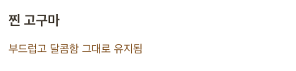 | 찐 고구마 | 부드럽고 달콤함 그대로 유지됨 |