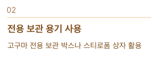- 고구마 전용 보관 박스나 스티로폼 상자 사용