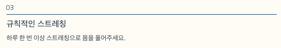 - 하루 한 번 이상 스트레칭으로 몸을 풀어주세요.