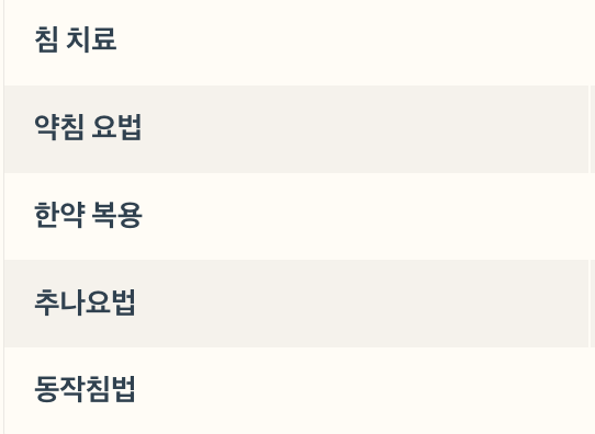 | 추나요법 | 척추 정렬 교정, 근육 이완 |