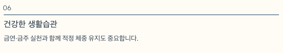 - 금연·금주 실천과 함께 적정 체중 유지도 중요합니다.