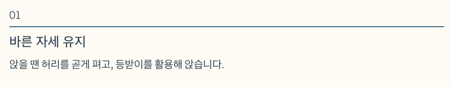 - 바른 자세 유지: 앉을 땐 허리를 곧게 펴고, 등받이를 활용해 앉습니다.