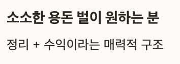 | 소소한 용돈 벌이 원하는 분 | 정리 + 수익이라는 매력적 구조 |