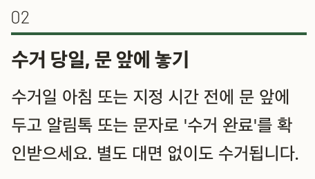 - 문 앞에 배출 → 수거 → 2~3일 내 입금