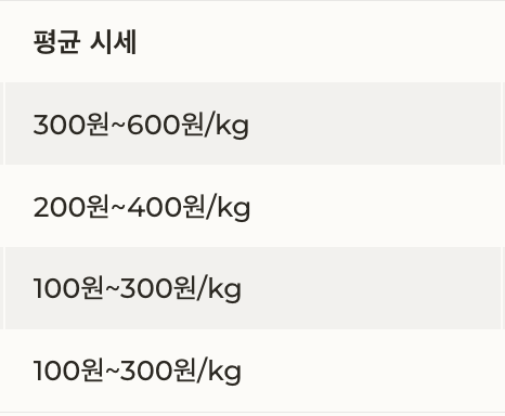 | 헌옷/의류 | 300원~600원/kg | 세탁된 상태, 상태 좋을수록 단가 상승 |