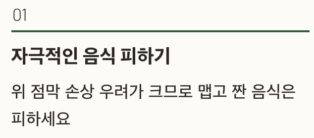 | 자극적인 음식 피하기 | 위 점막 손상 우려 |