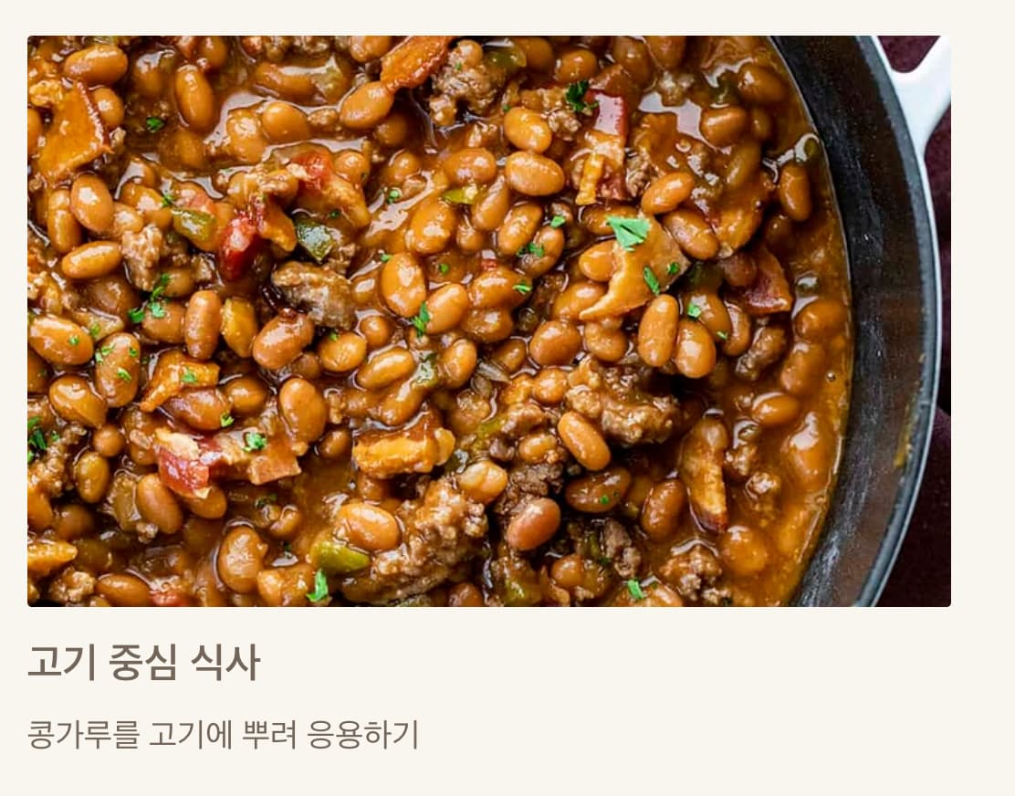 콩가루를 고기에 뿌리는 방식으로 응용할 수 있습니다.