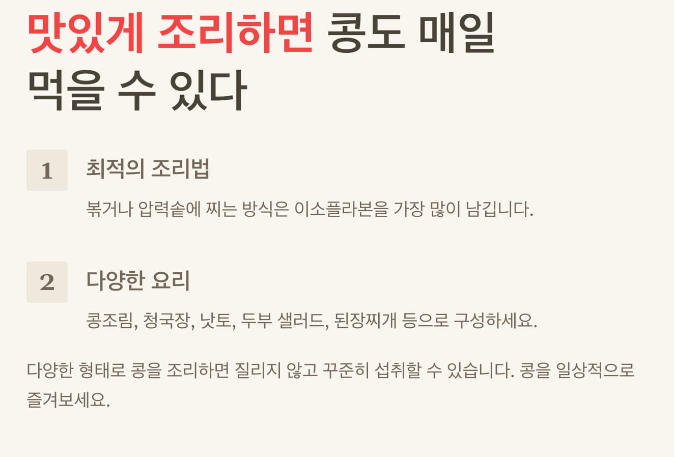 특히 볶거나 압력솥에 찌는 방식은 콩 속 이소플라본을 가장 많이 남기는 방법입니다.