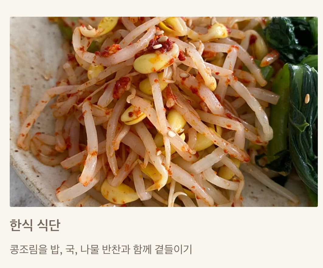 매일 같은 형태가 아닌 다양한 형태로 콩을 조리하면 질리지 않고 꾸준히 섭취할 수 있다는 장점도 있습니다.