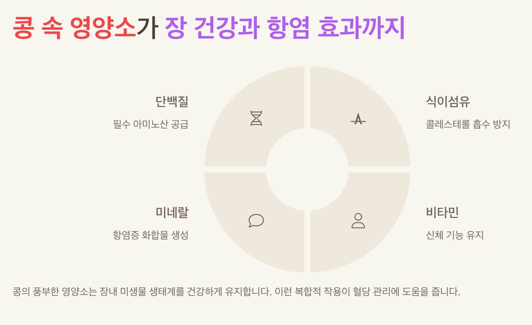 콩은 단순한 건강식품을 넘어서 당뇨병 예방과 혈관 건강을 지키는 핵심 식재료로 자리 잡고 있습니다.