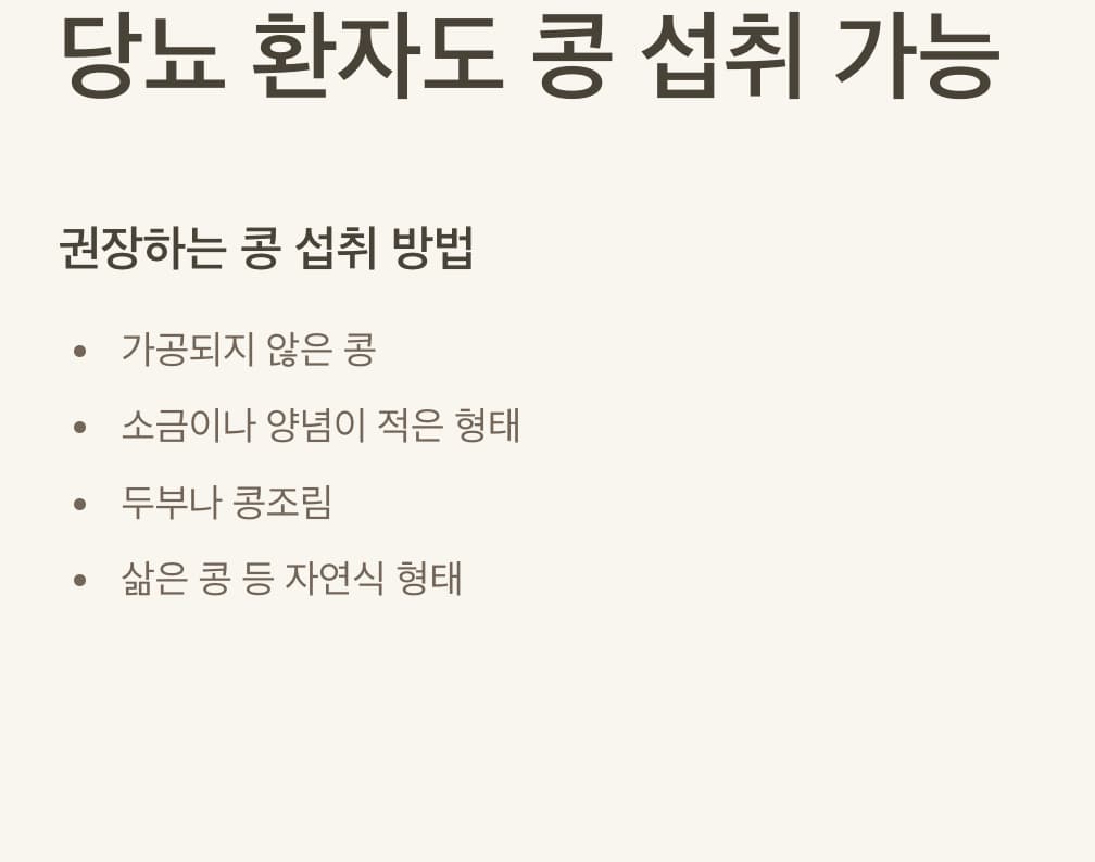 당뇨 환자도 콩 섭취 가능, 조리 방식 은 중요
