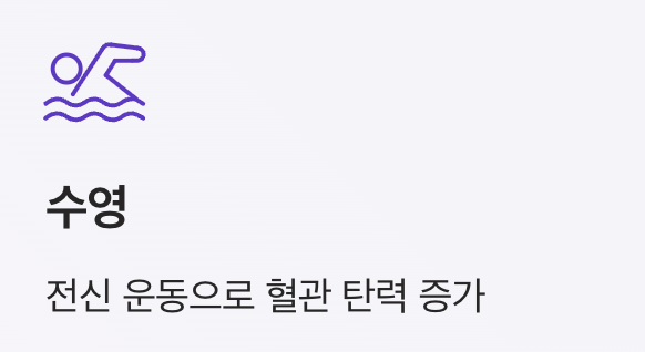 | 운동 | 유산소 운동 주 5회 | 혈관 탄력 증가 |