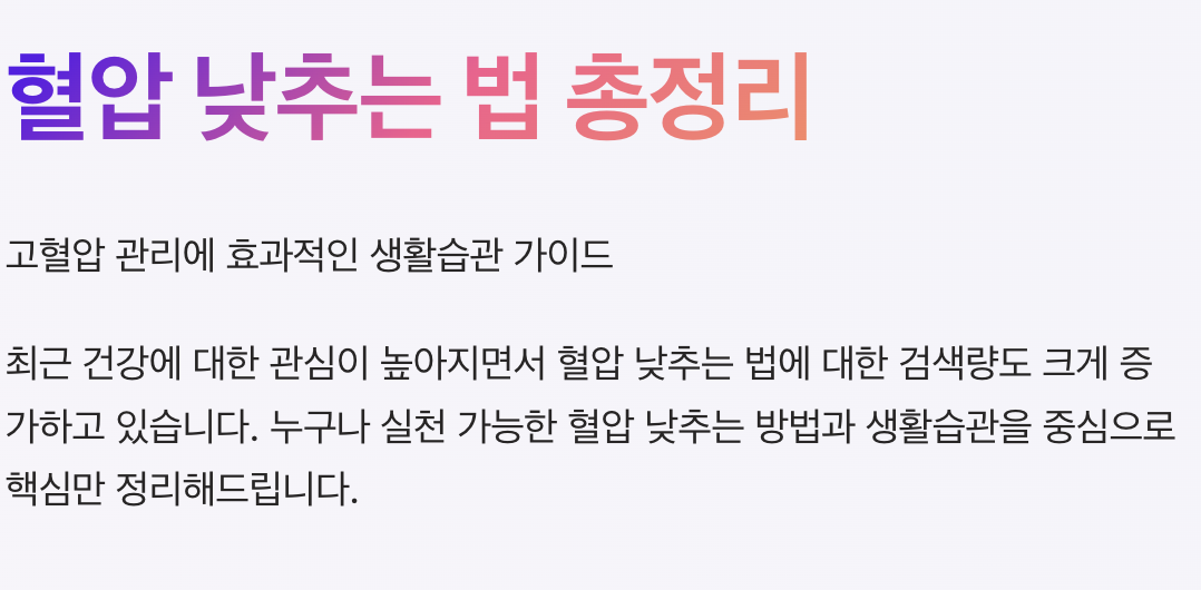 이번 글에서는 누구나 실천 가능한 혈압 낮추는 방법과 생활습관을 중심으로 핵심만 정리해드립니다.