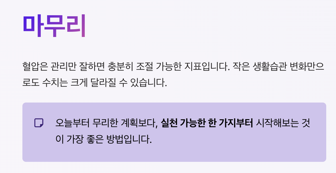 | 관리 습관 | 혈압 꾸준히 측정 | 조기 대응 가능 |