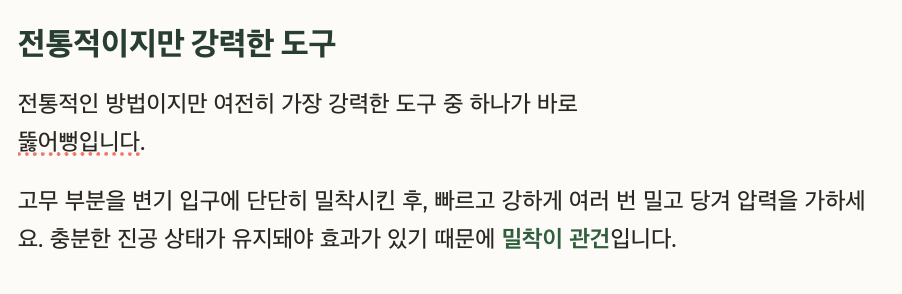 전통적인 방법이지만 여전히 가장 강력한 도구 중 하나가 바로 뚫어뻥입니다.