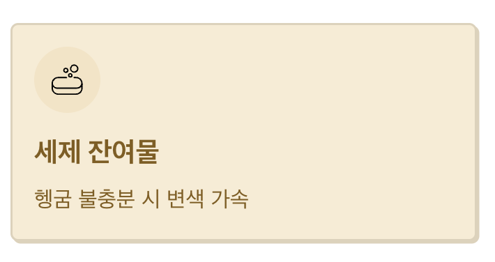 세제 잔여물 | 헹굼 불충분 시 변색 가속 |