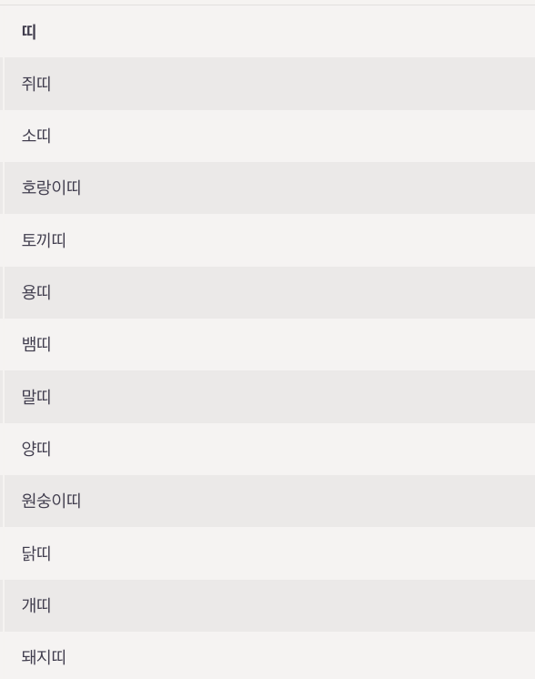 | 1 | 쥐띠 | 子 |