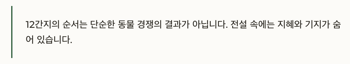12간지의 순서는 단순한 동물 경쟁의 결과가 아닙니다. 전설에 따르면 옥황상제가 “새해 첫날 궁에 가장 먼저 도착한 순서대로 순번을 정하겠다”고 했고, 쥐는 소의 등에 몰래 올라탔다가 마지막에 뛰어내려 1등을 차지했다고 하죠. 이처럼 순서 안에는 지혜와 기지가 숨어 있습니다.