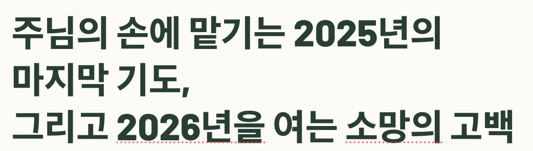 주님의 손에 맡기는 2025년의 마지막 기도, 그리고 2026년을 여는 소망의 고백