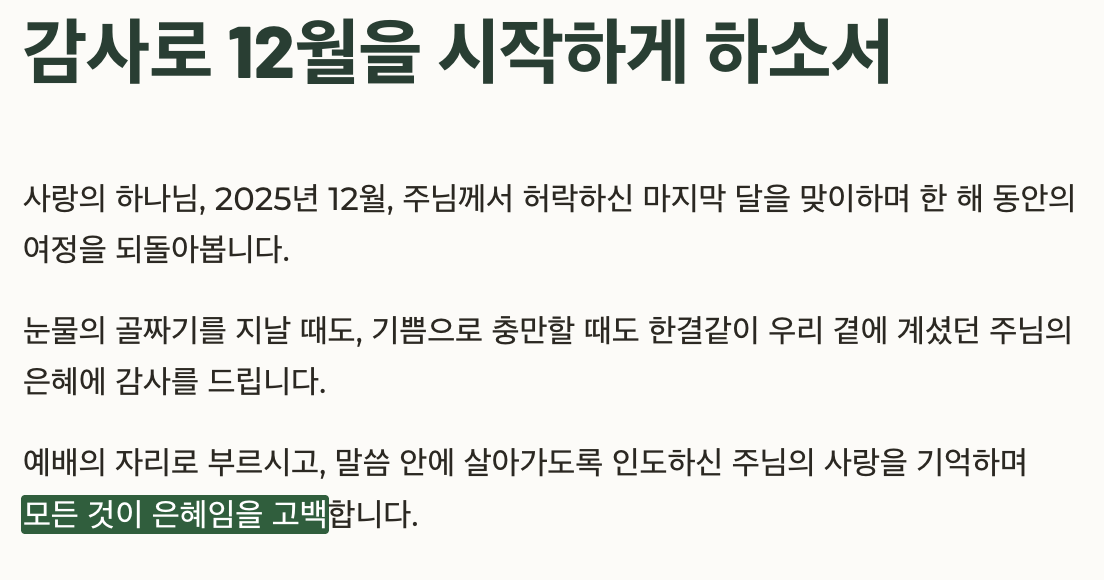 2025년 12월, 주님께서 허락하신 마지막 달을 맞이하며