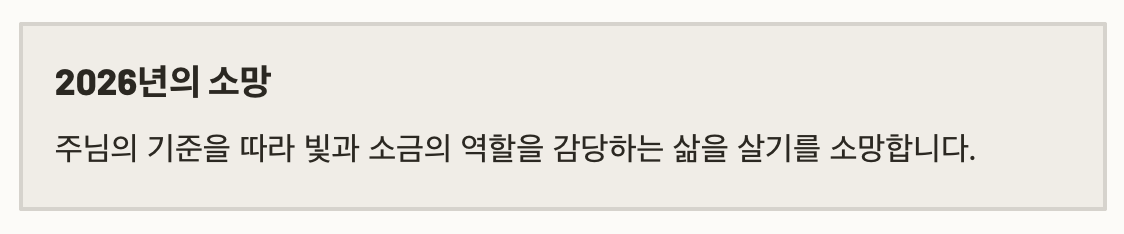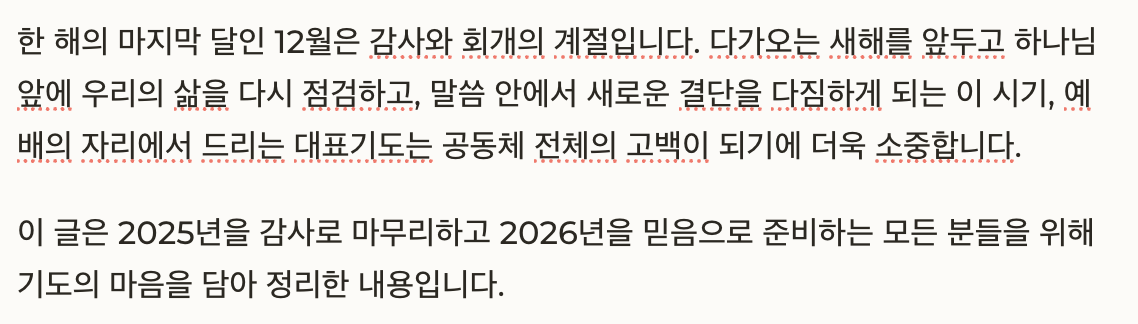 2025년을 감사로 마무리하고 2026년을 믿음으로 준비하는 모든 분들을 위해