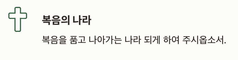 복음을 품고 나아가는 나라 되게 하여 주시옵소서.