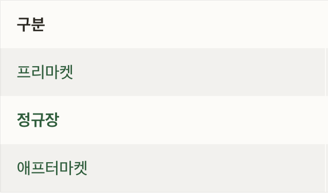 | 애프터마켓 | 16:00 ~ 20:00 | 06:00 ~ 10:00(+1일) |