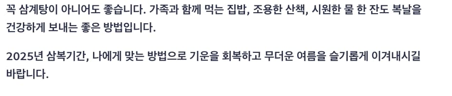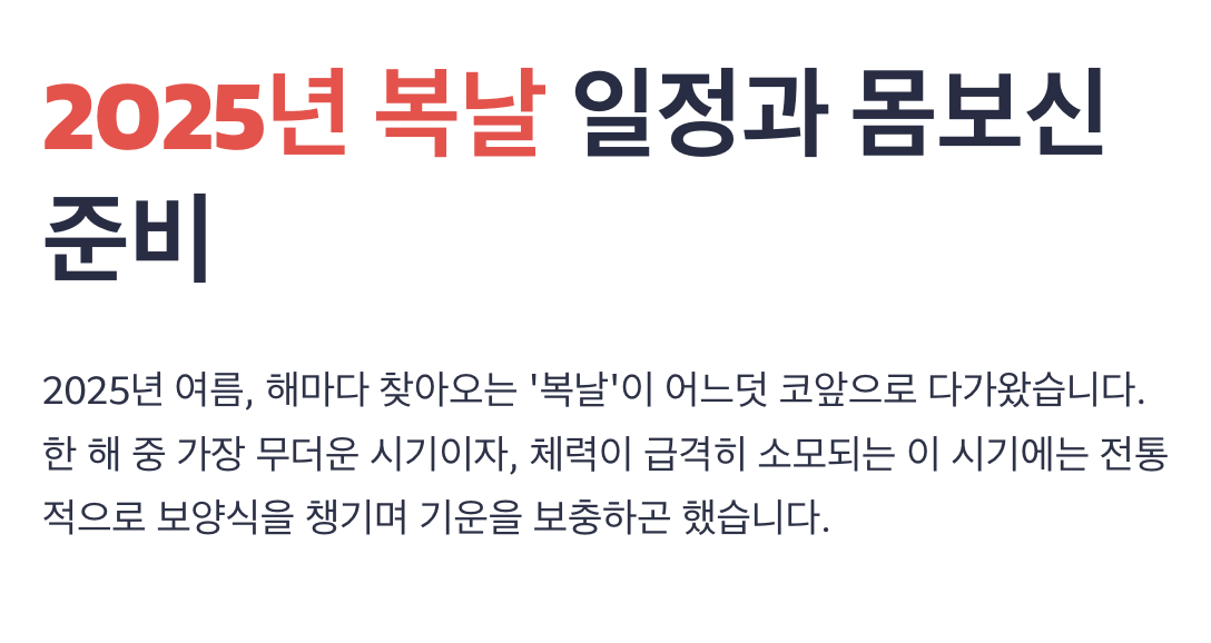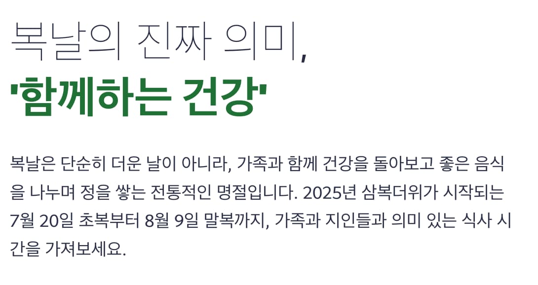 2025년 여름, 해마다 찾아오는 ‘복날’이 어느덧 코앞으로 다가왔습니다.