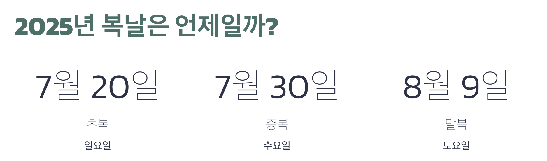 | 초복 | 2025년 7월 20일 | 일요일 |