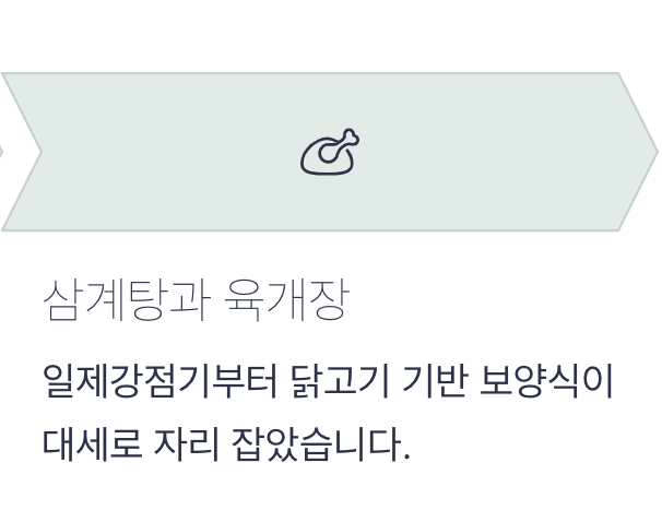 이후 일제강점기부터는 삼계탕과 육개장 등 닭고기 기반 보양식이